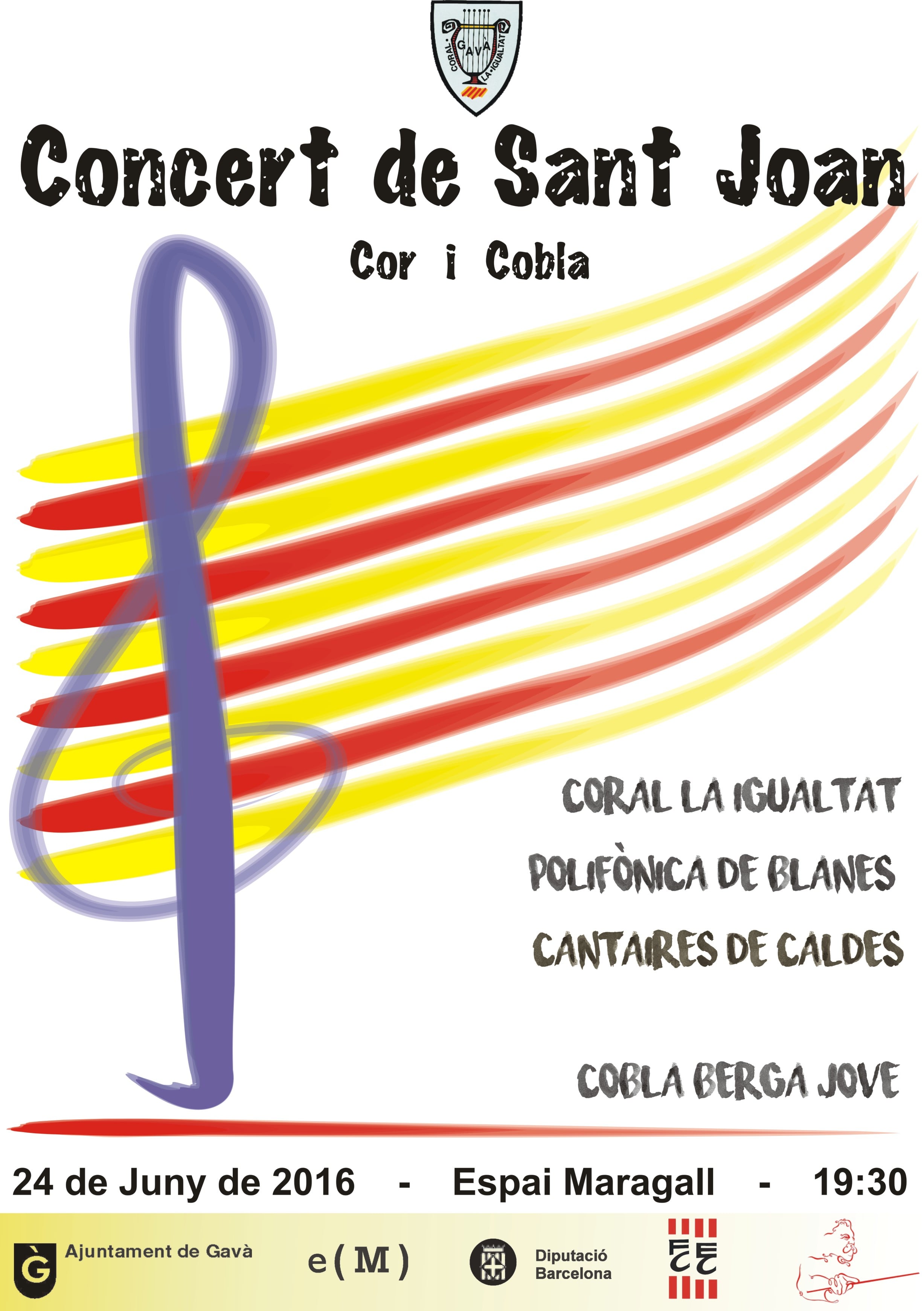 Seguint la línia inicial de la cobla de promocionar els concerts de cobla, enguany per la festivitat de Sant Joan tenim la oportunitat de participar en un concert a Gavà, juntament amb les corals La Igualtat, Polifònica de Blanes i Cantaires de Caldes. Serà a dos quarts de 8 del vespre a l’Espai Maragall de Gavà. A continuació us mostrem el programa del concert, que com veureu, està ben carregat de sardanes ben populars i cançons molt populars de diversos artistes d’arreu del territori Català.