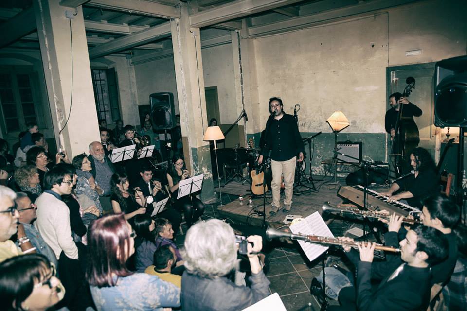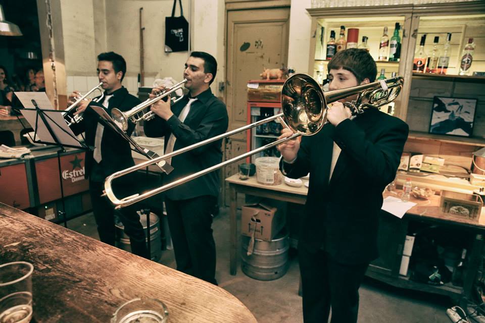 Aquesta va ser la primera sorpresa, els trompetes i el trombó van aparèixer per acompanyar en l'interpretació de "El vals de la ginesta". Fotografía d'Abel Castells